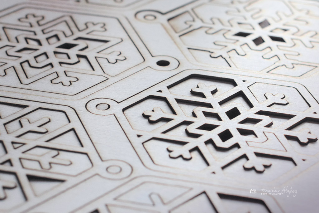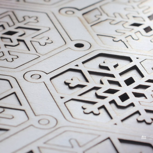What began as clean vectors soon turned into the impatient buzz of a laser cutter doing its thing. Thin sheets of plywood carefully transformed into a small collection of wooden snowflakes. Crisp edges, straight, snowflaky lines. And just enough imperfection to remind me they are real.